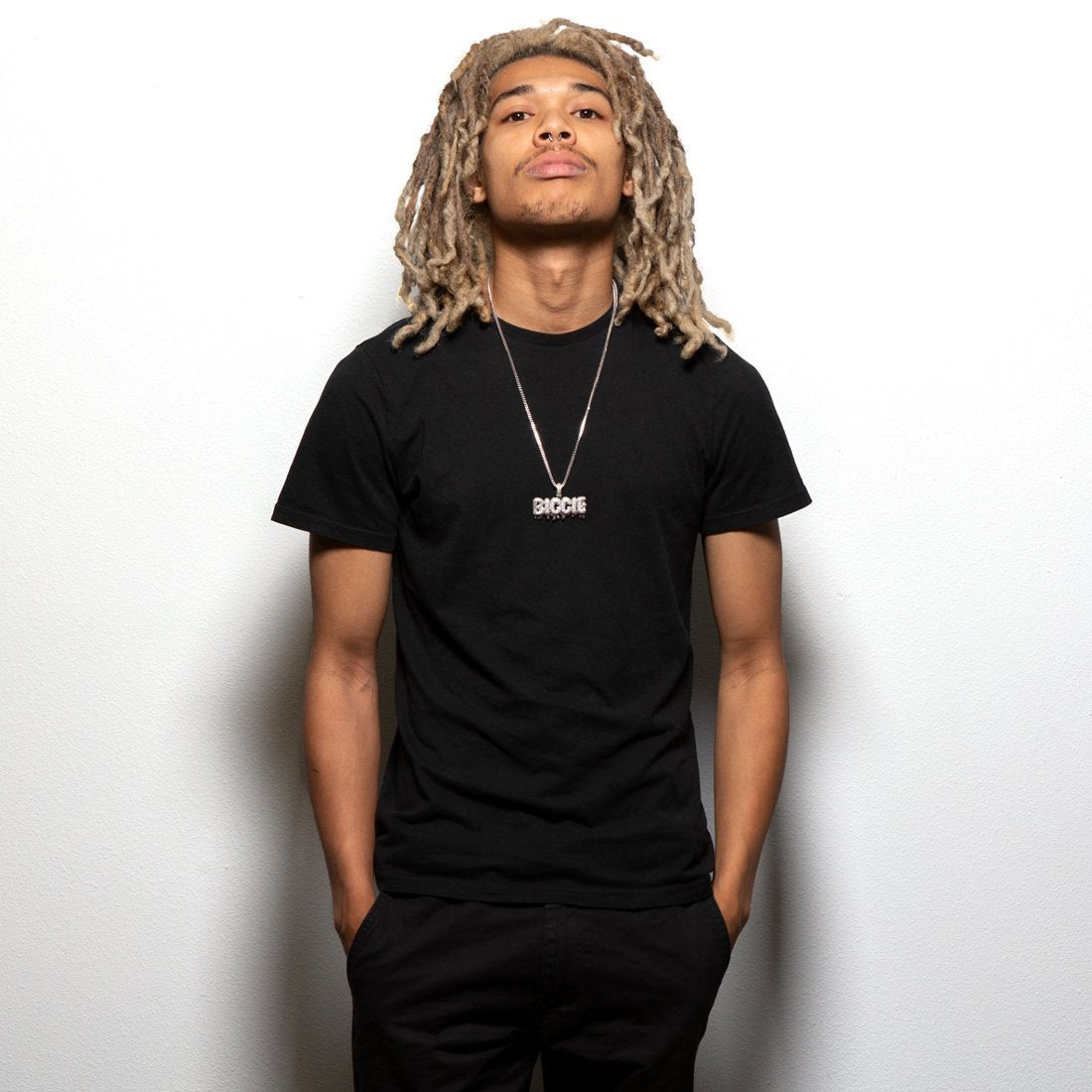 Using the bubble font with some drip, the Biggie pendant come in white gold plating that pairs perfectly with the high quality lab diamonds to honor one of the greatest hip hop artists of all time. Each Biggie Drip Necklace comes with a 2.5mm stainless steel Franco chain.