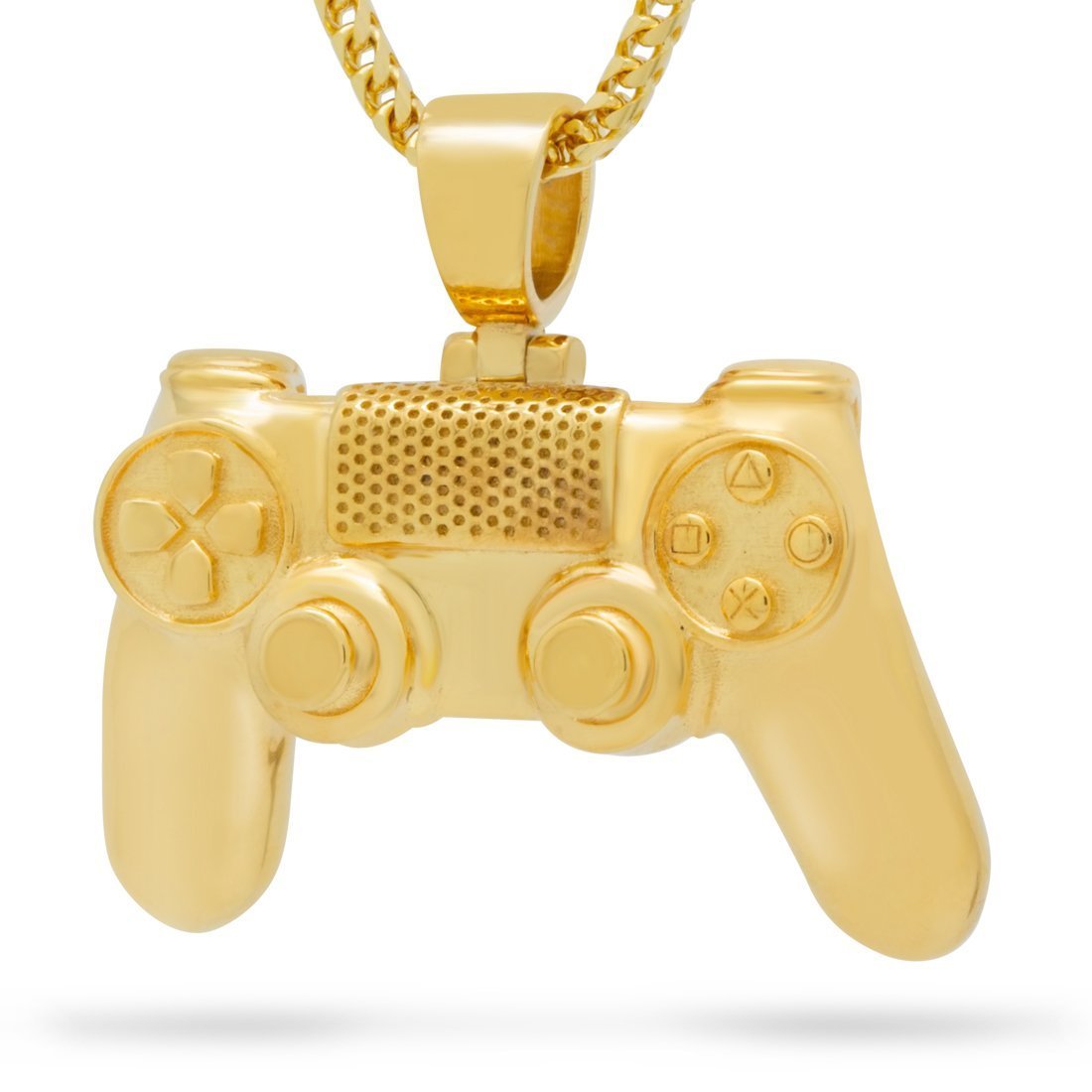 Part of the PlayStation® x King Ice collaboration, the new Solid 14K Gold Controller Necklace pays tribute to the classic gaming brand and its controller. The solid 14K Gold controller has the familiar buttons and touch pad engraved, while the thumbsticks have a full 3D design. All four L and R buttons are also present, completing the controller design. Each necklace is paired with a solid gold 2mm, 20" Franco Chain.