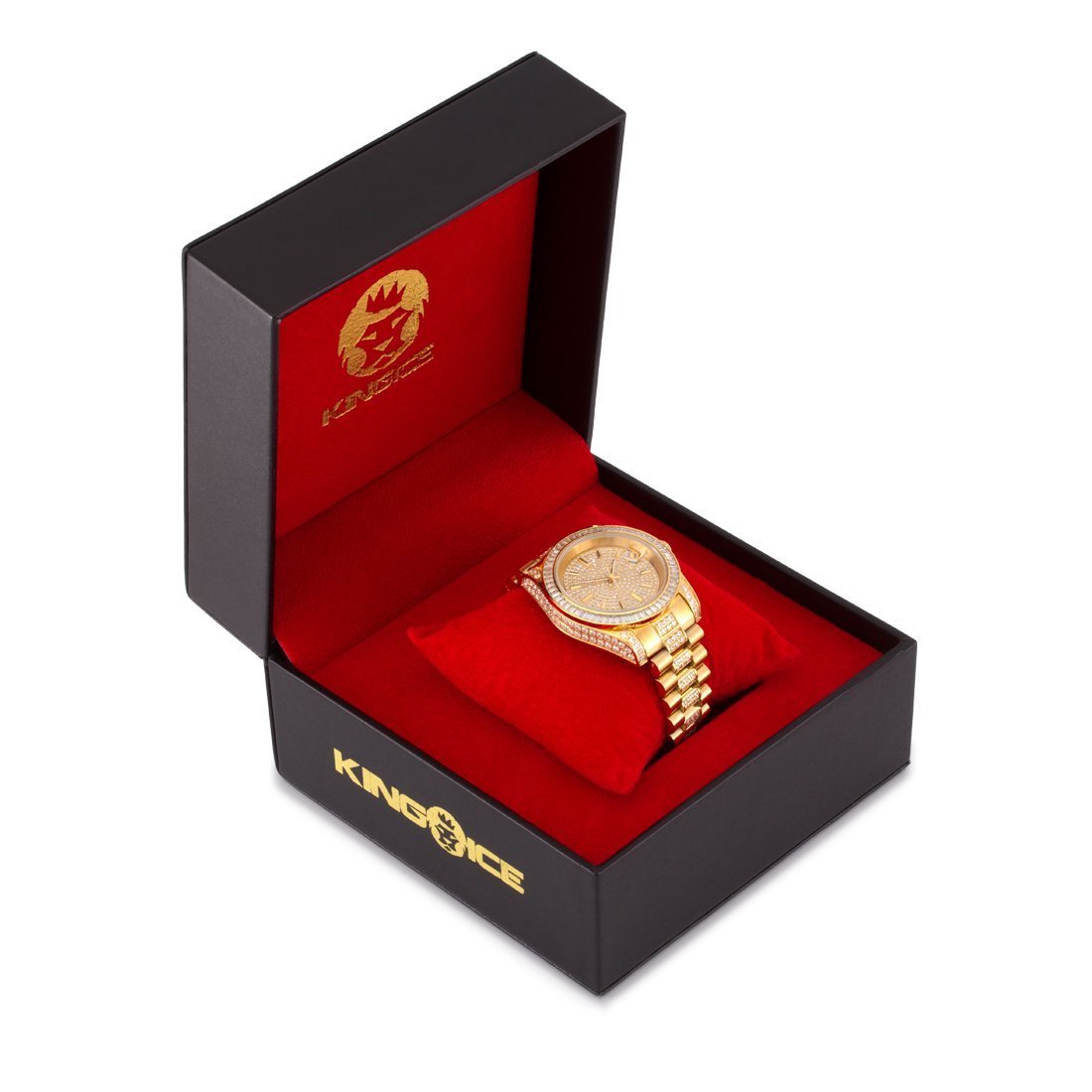 Built for a man with class, The Royal Iced Watch comes lined with handset VVS Diamond Simulate stones to give this watch a high class look and feel. The Royal features a magnified date along side its 3/4" wide band.