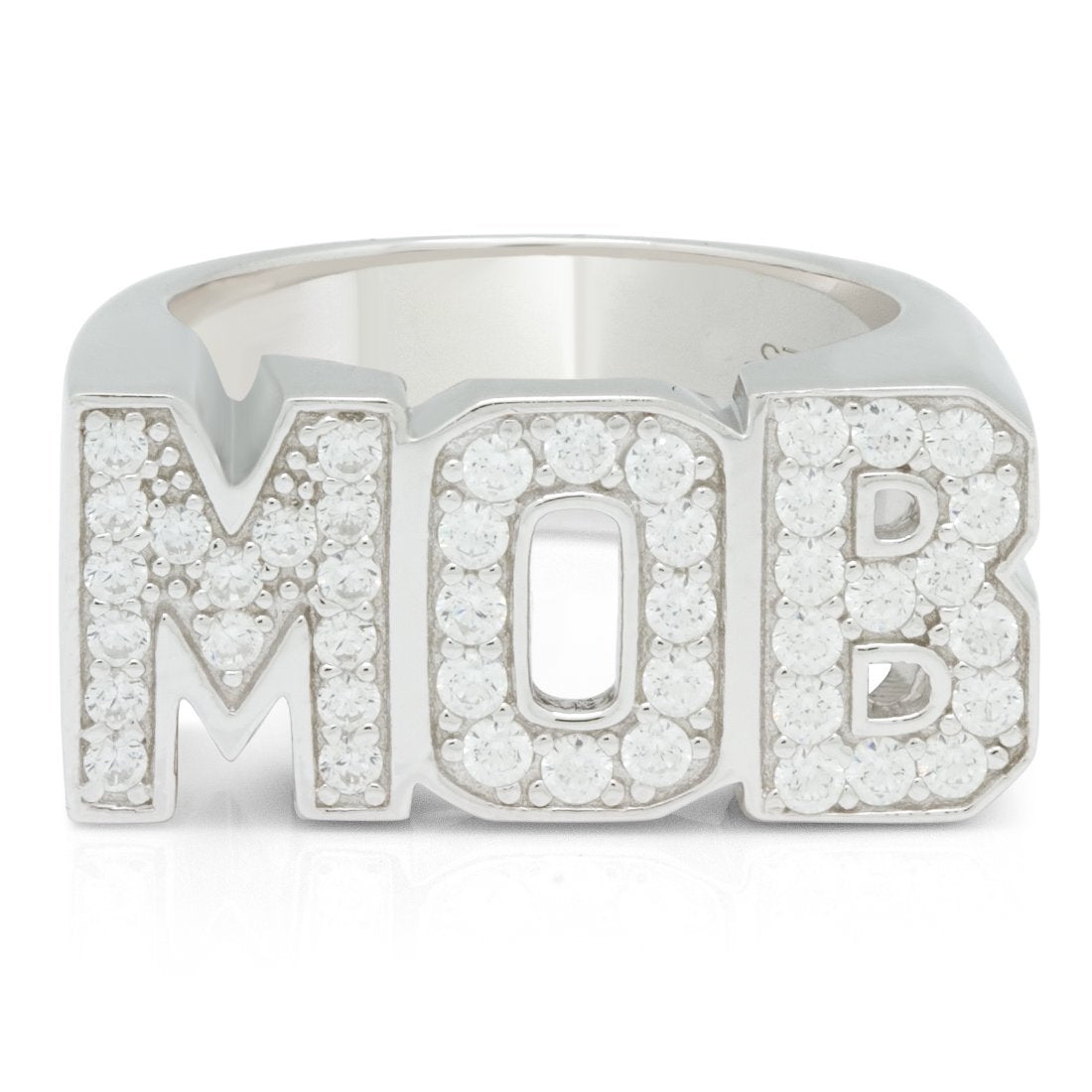 The M.O.B. (Money Over B*tches) is for those on that grind and has no time for distractions. Made from solid .925 sterling silver and available in 14K gold and white gold plating, the MOB ring is a popular choice for hip hop jewelry for its vibrant look and unsubtle meaning.
