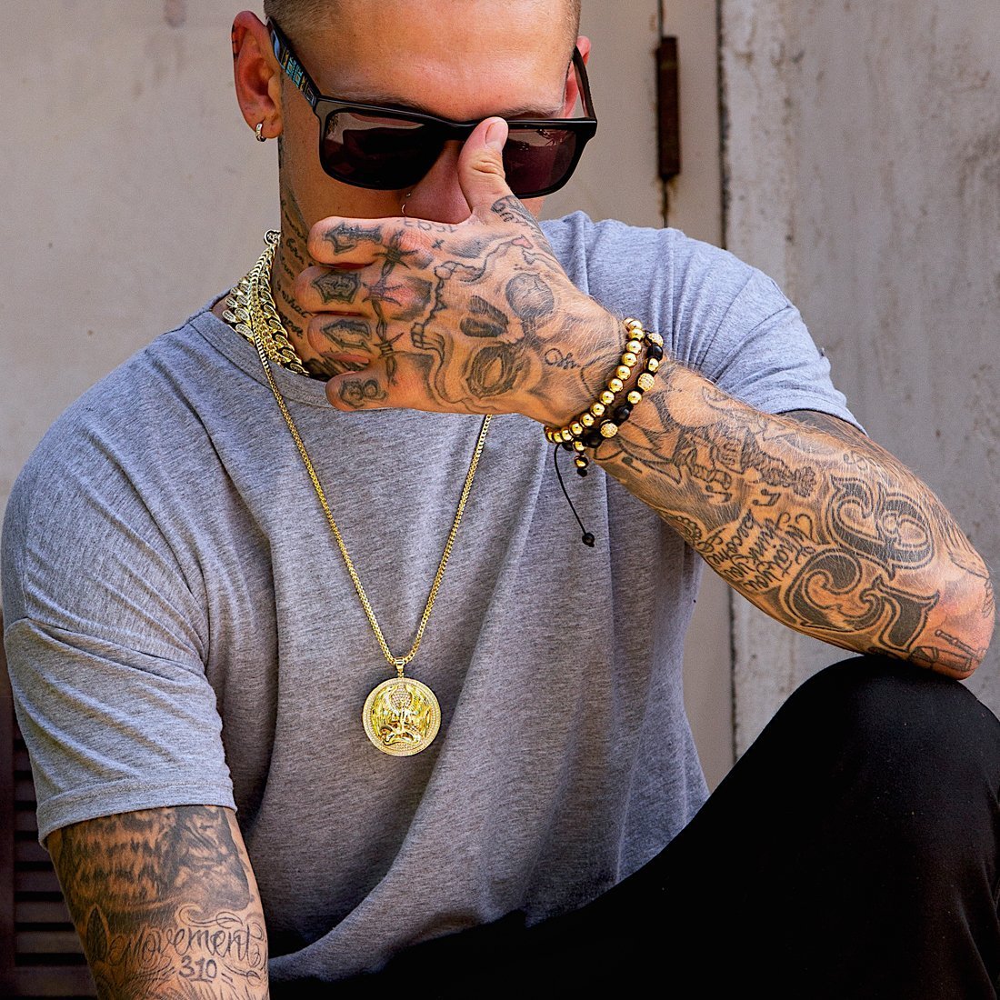 Made from 14K Gold plating and lined with AAA stones, the Euphanasia Medallion brings to life one of the most iconic symbols in streetwear. Each Pendant features an angel holding and killing the snake to free itself from its clutches. Included with each pendant is a 2.5mm, 20” Franco chain.