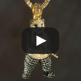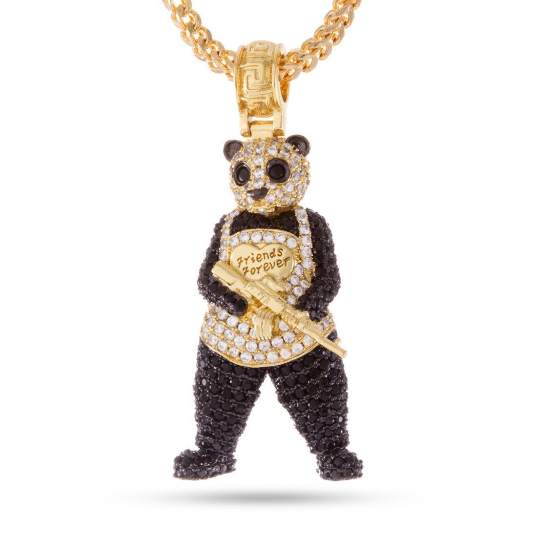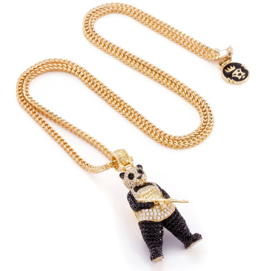 As one of Joker’s henchmen, Panda Man rose to infamy with his friendly, lovable look equipped with an AK-47. Each piece recreates the sinister look of Panda Man, while the AAA, CZ stones and 14K gold plating create a quality, stylish look. Each Panda Man piece includes a 20”, 2.5mm stainless steel Franco chain to complete this one-of-kind piece.