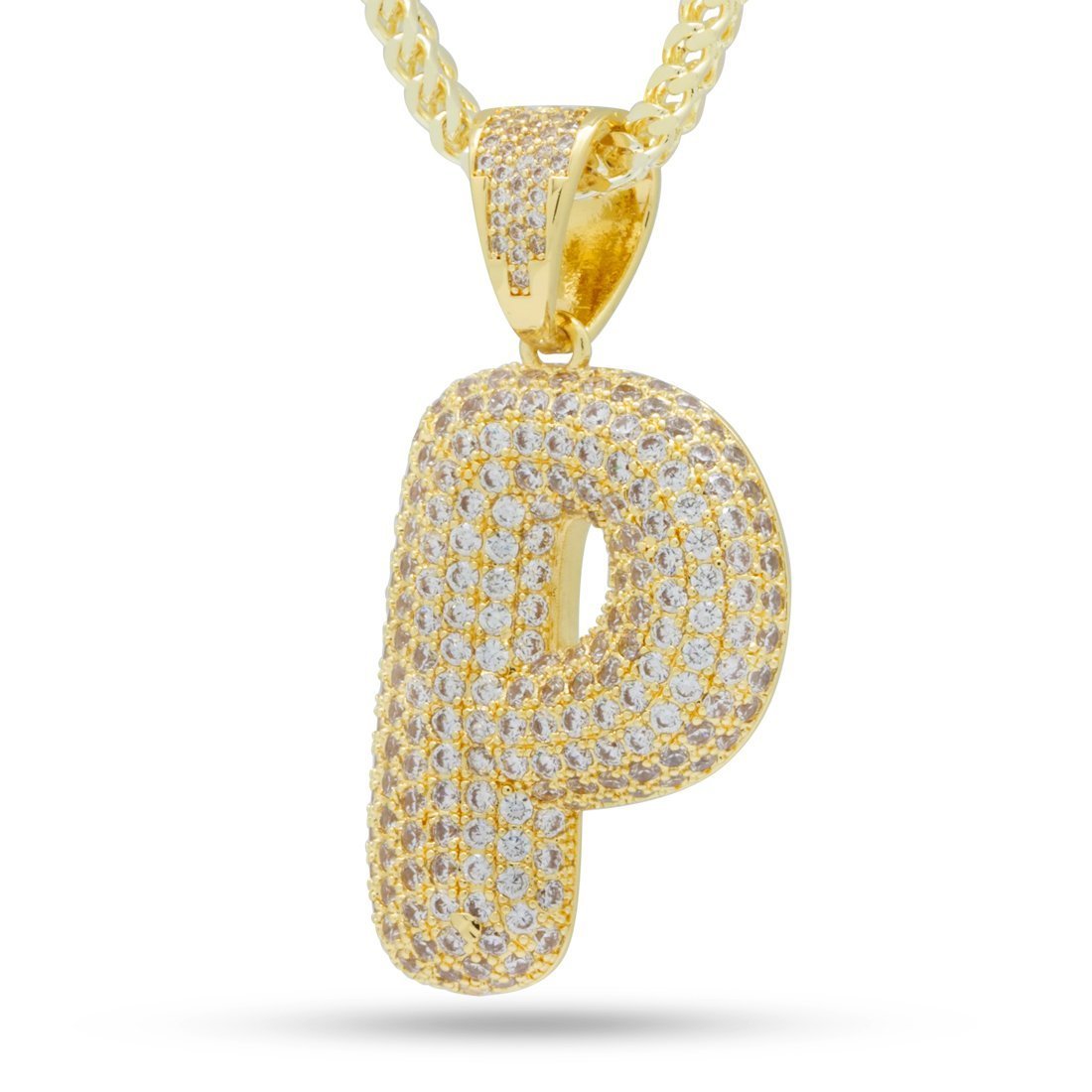 Plated in 14K Gold and lined with clear VVS Diamond Simulates, the Bubble Letters create an iconic street wear staple piece. Each piece belonging to the collection features a 2.5mm, 20" Franco chain to complete its look.