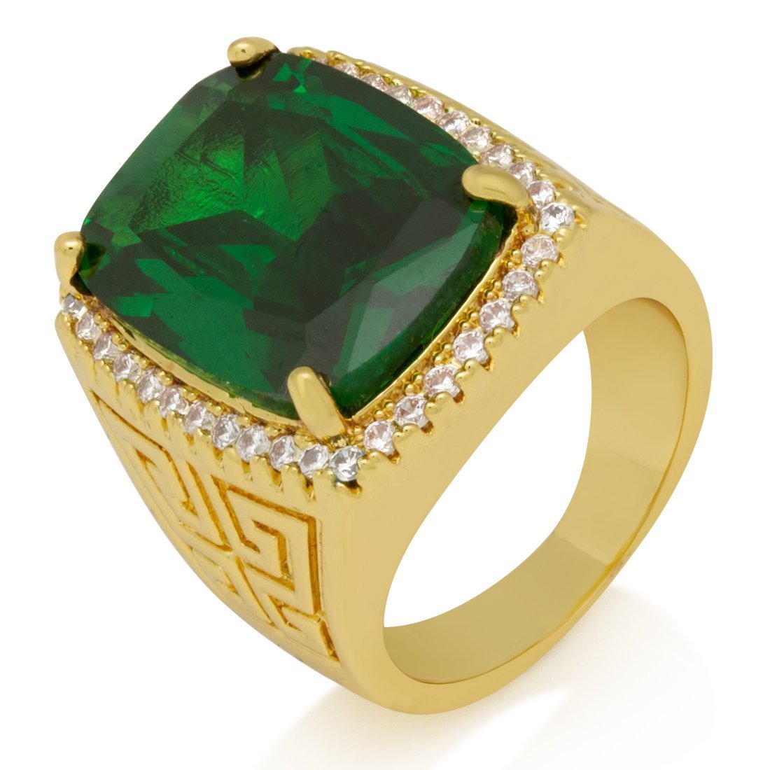 Crowned with an Emerald CZ gemstone, each Crown Julz Ring aims to represent the might and wealth you've come to amass. With clear CZ stones covering the exterior of each Emerald CZ gemstone, the Jewel represents the heart of your wealth while the 14K gold plating add value and shine to this ring.